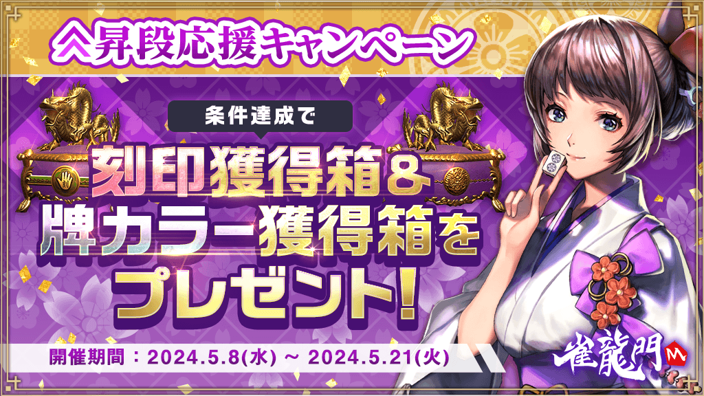 「雀龍門M」を始めたばかりの方や、いつもプレイしてくれている方への感謝の気持ちを込めて、「昇段応援キャンペーン」を開催いたします!