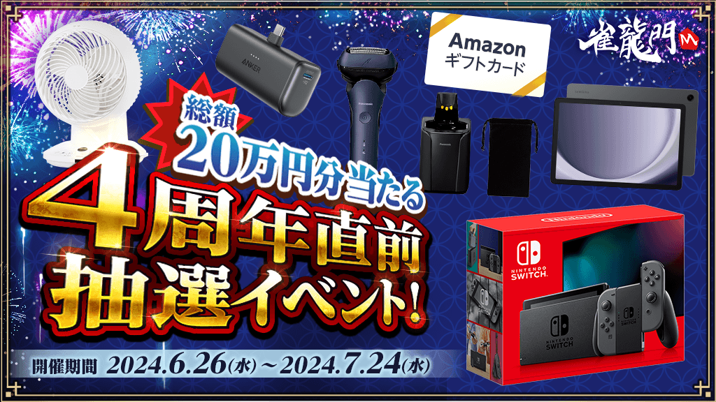 キャンペーン期間中何度でも応募できますので、麻雀を楽しみながら応募券をたくさん集めて豪華景品にご応募ください。