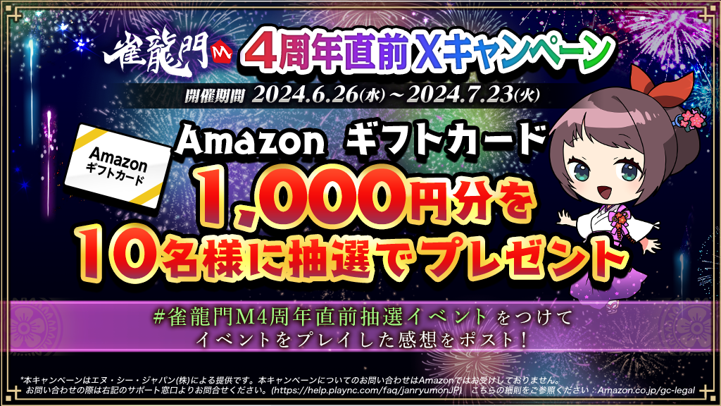 お問い合わせの際は冒頭に「雀龍門M 4周年直前Xキャンペーン」と記載してください。