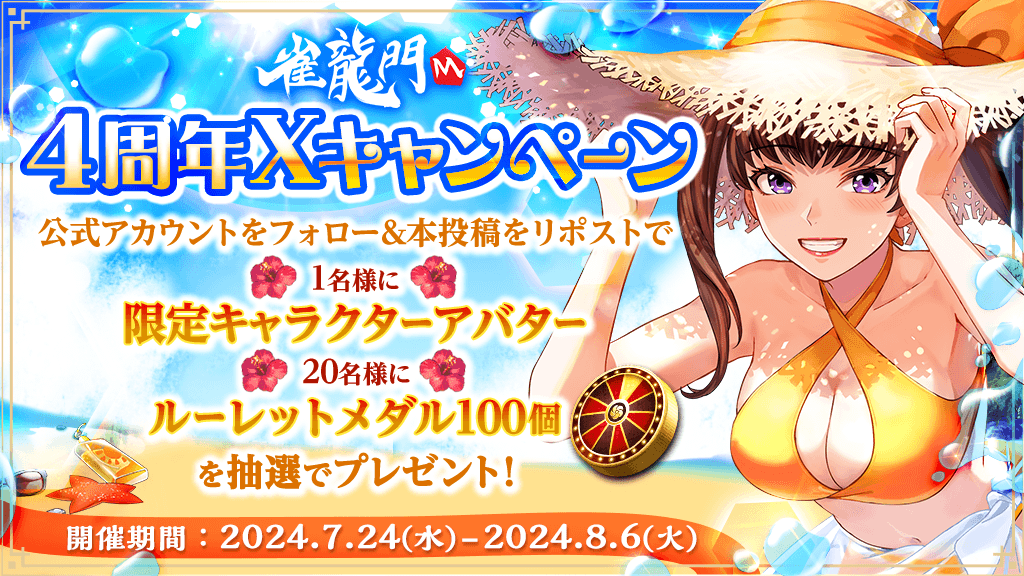 4周年を記念して、「雀龍門M 4周年Xキャンペーン」を開催!