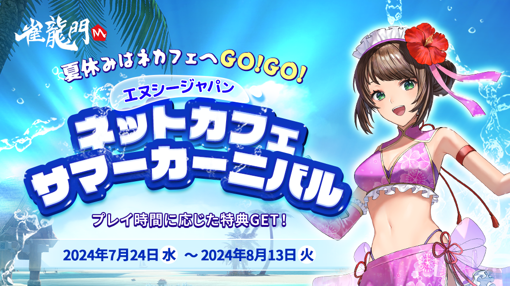 公認ネットカフェにて「夏休みはネカフェへGO!GO! エヌシージャパン ネットカフェサマーカーニバル」を開催いたします。