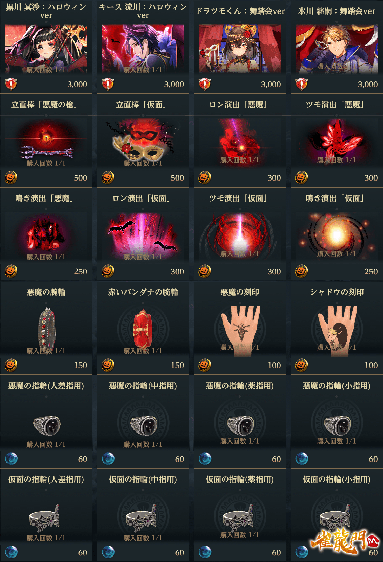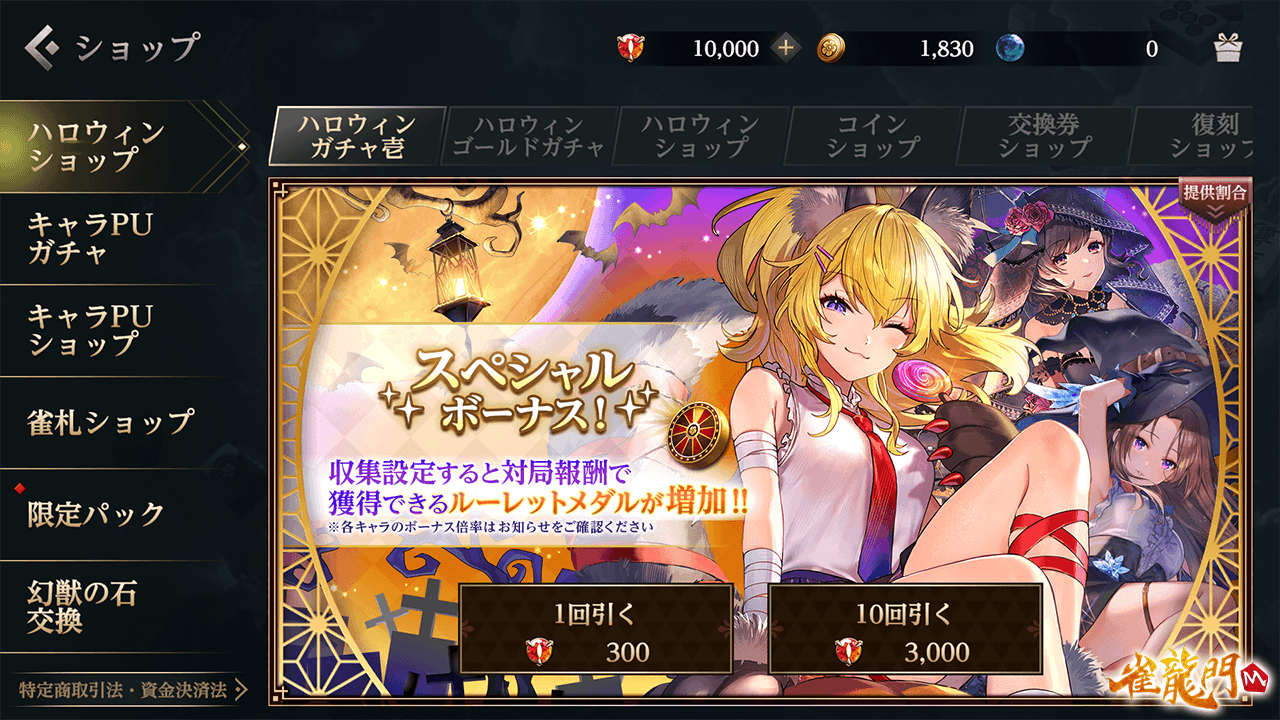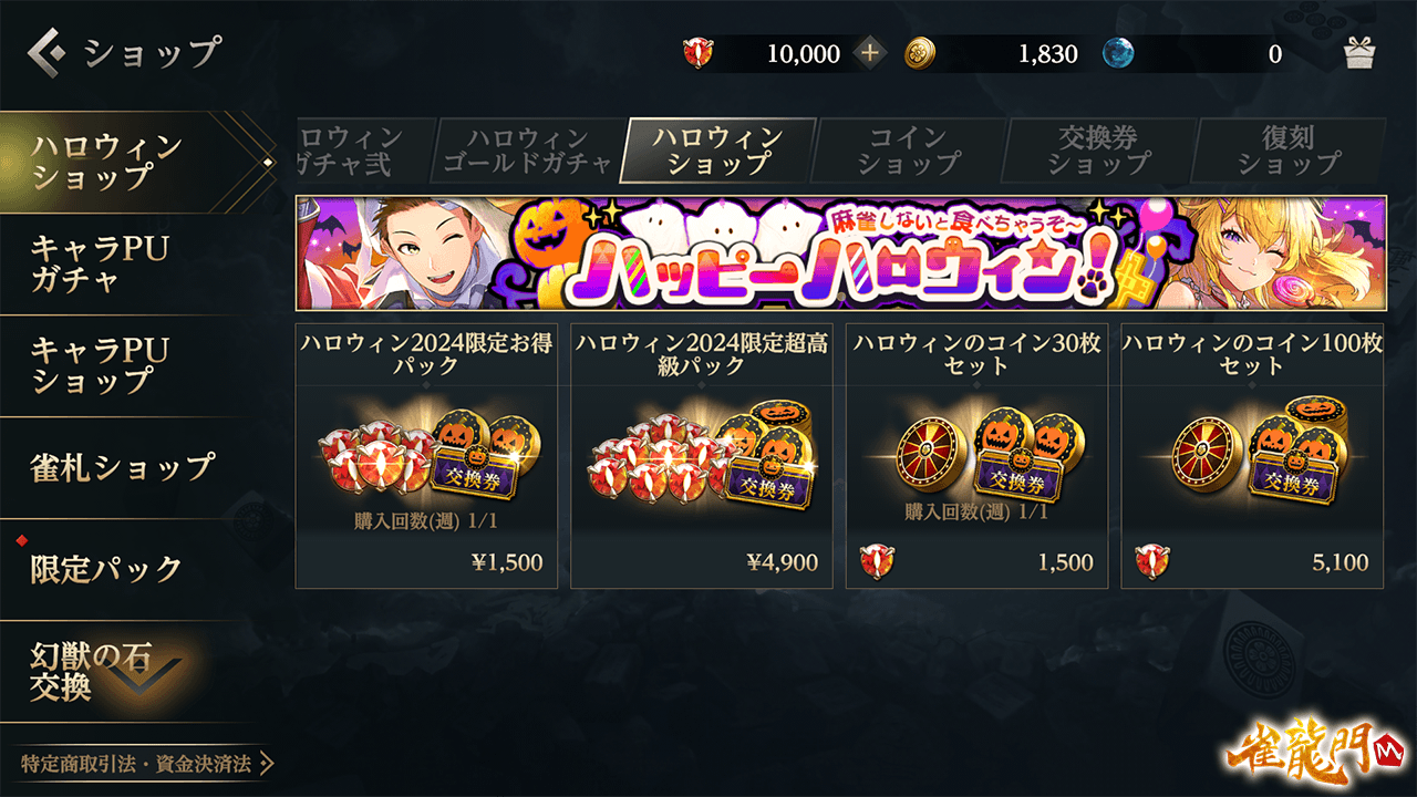 龍宝をお得に購入できる特別なパック商品や、「ハッピーハロウィン!麻雀しないと食べちゃうぞ~」イベント限定アイテムが出現するハロウィンガチャが登場!