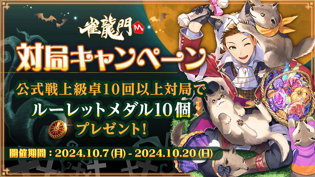 10月2日より開催しているイベント「ハッピーハロウィン!麻雀しないと食べちゃうぞ~」を皆様によりお楽しみいただくために、公式戦の対局キャンペーンを開催いたします。