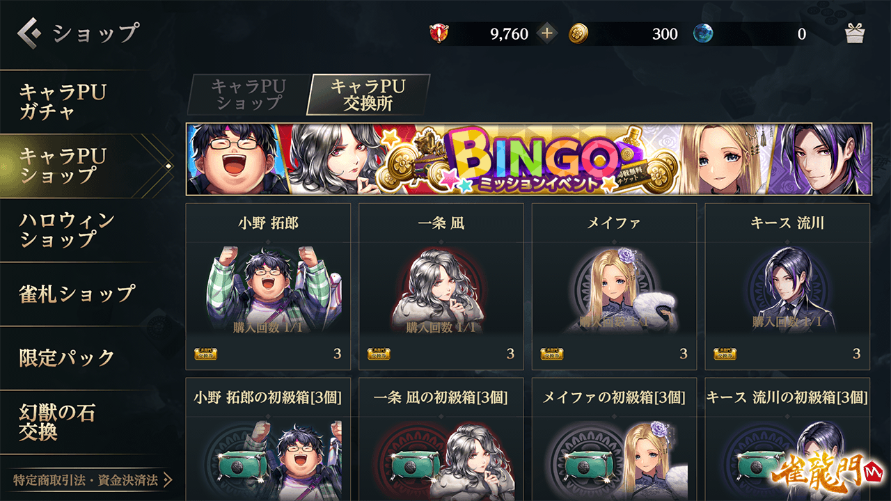 「ビンゴミッションイベント ピックアップキャラゲットのチャンス!!」の開催をお知らせいたします
