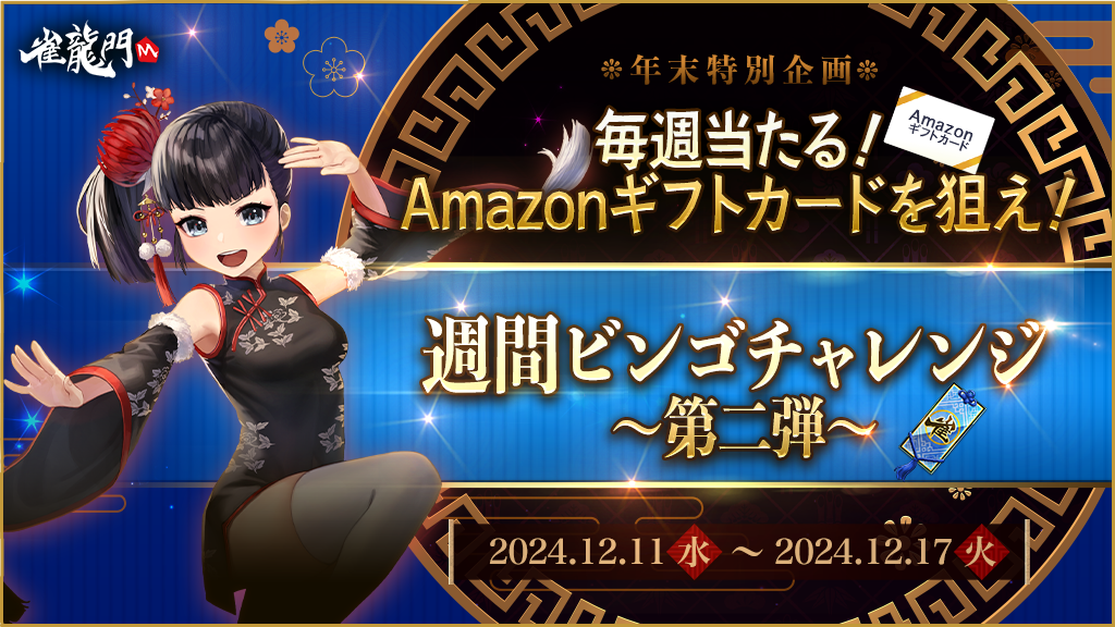応募券[青]を獲得したら「ホーム画面>ショップ>雀龍門M大抽選会>ビンゴチャレンジ第二弾」からご応募ください。