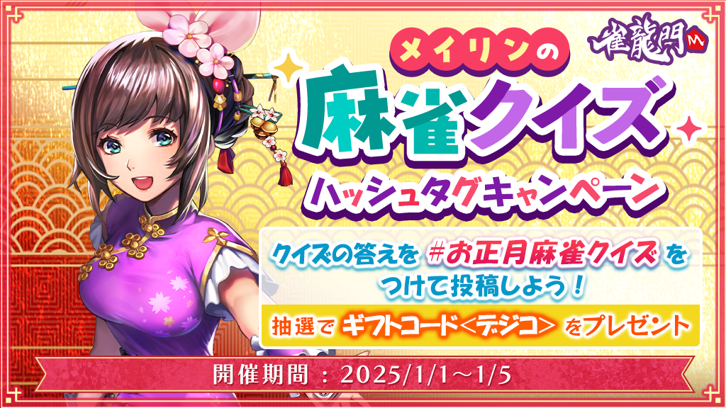 1月1日より「メイリンの麻雀クイズハッシュタグキャンペーン」を開催いたします。