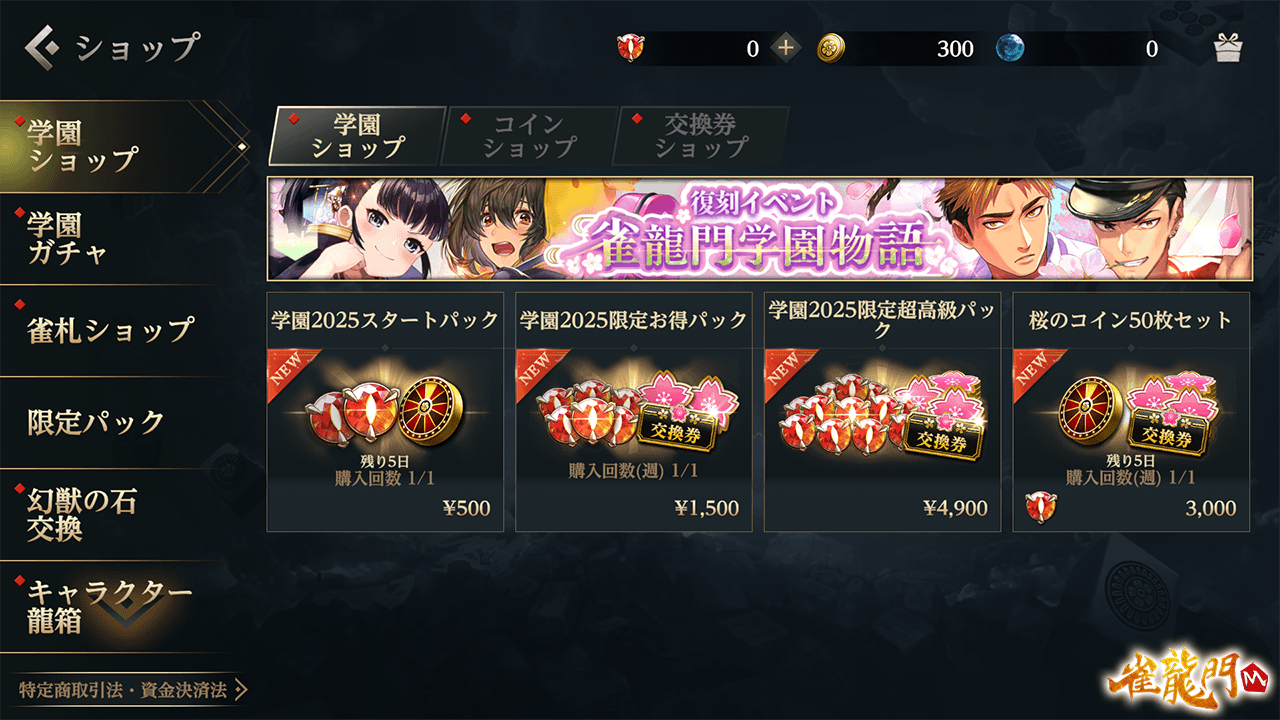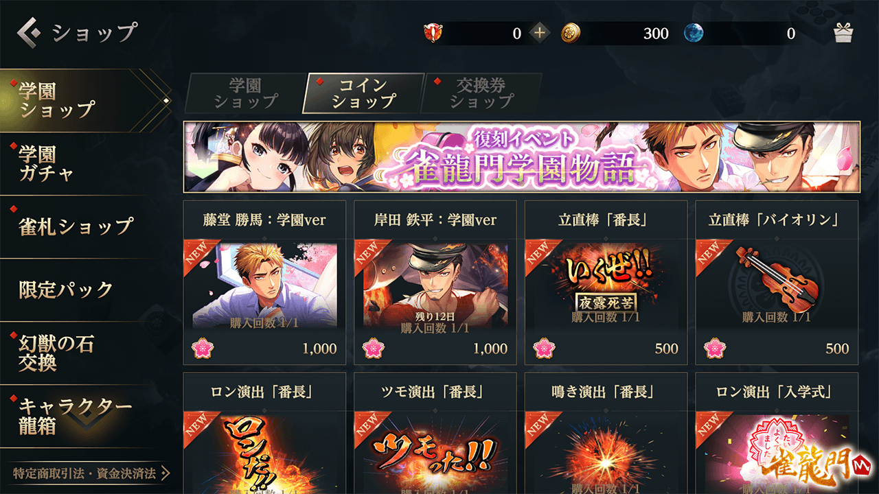 集めた「桜のコイン」は学園ショップ内のコインショップで限定アイテムと交換しましょう