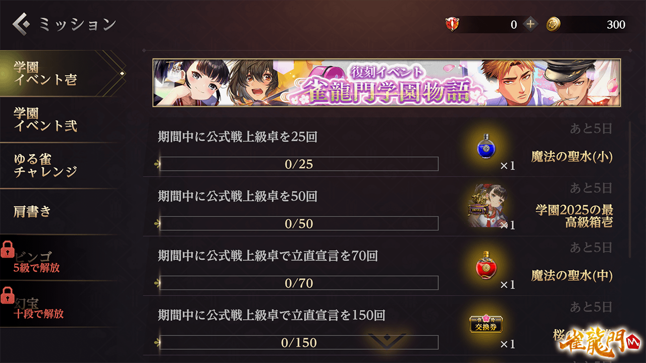 ※公式戦通常卓、友人戦、AI戦、一局戦、雀札戦での戦績は、本イベントにはカウントされません。