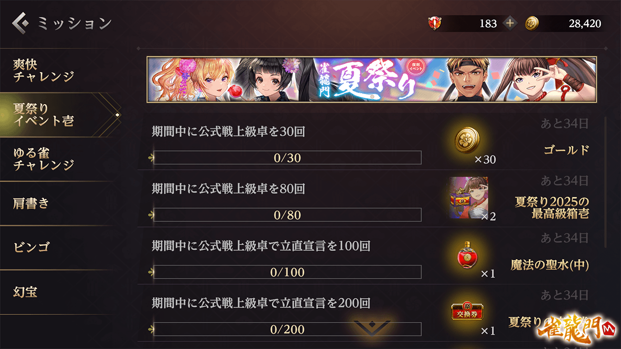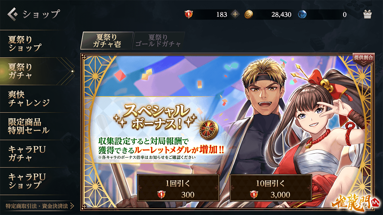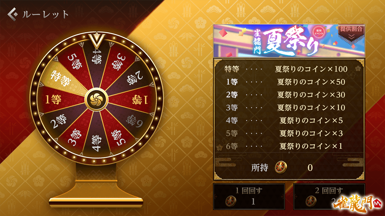 公式戦(上級卓)で獲得できる対局報酬のルーレットメダルが増加し、「夏祭りのコイン」を獲得する効率が大幅にアップ!