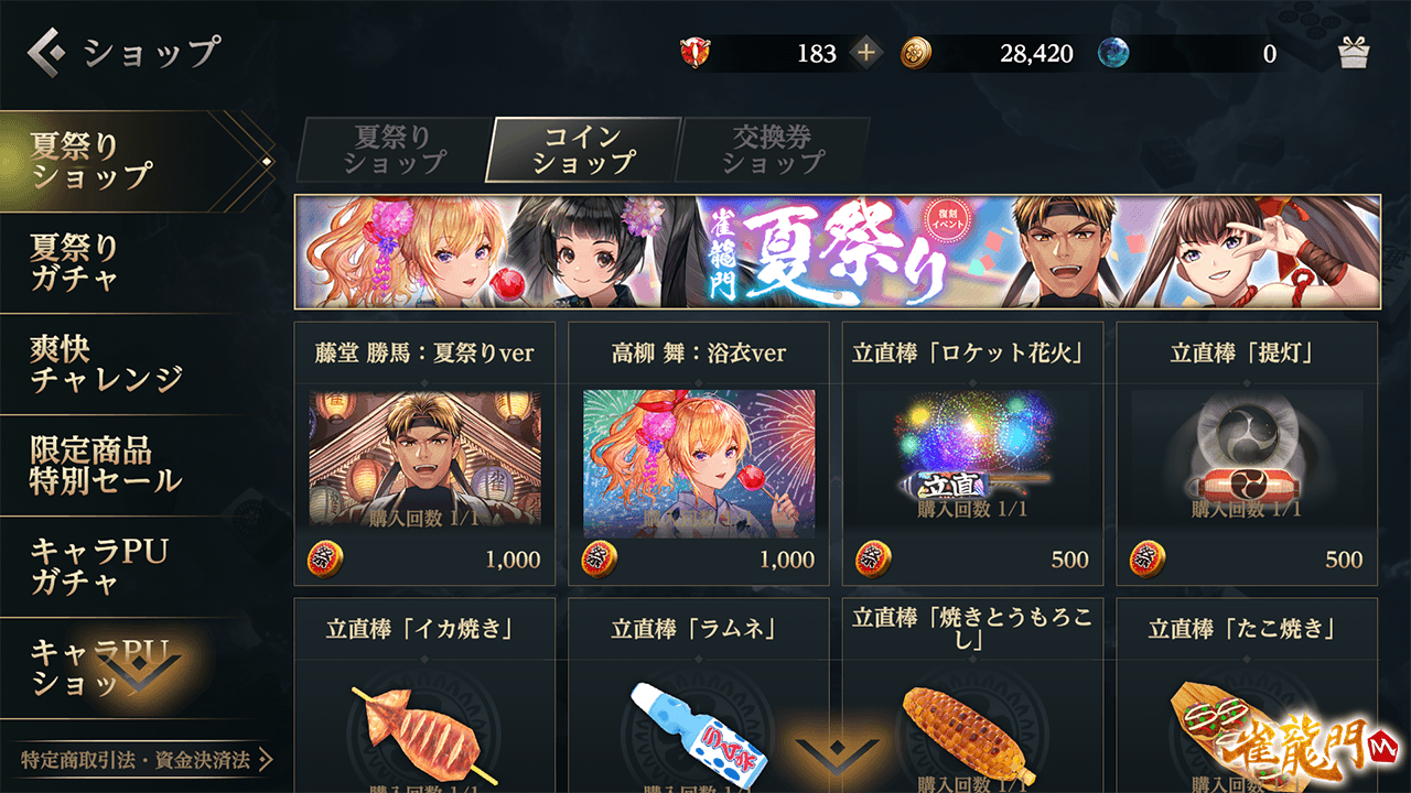 「夏祭りのコイン」で交換できる限定アイテムはショップでチェック!
