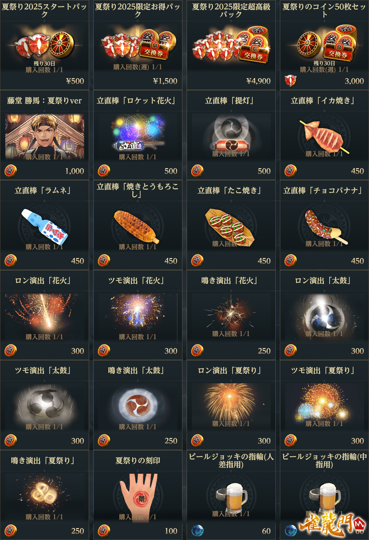 過去に開催したイベント「雀龍門夏祭り」に登場したの限定アバターやアイテムが再登場!!