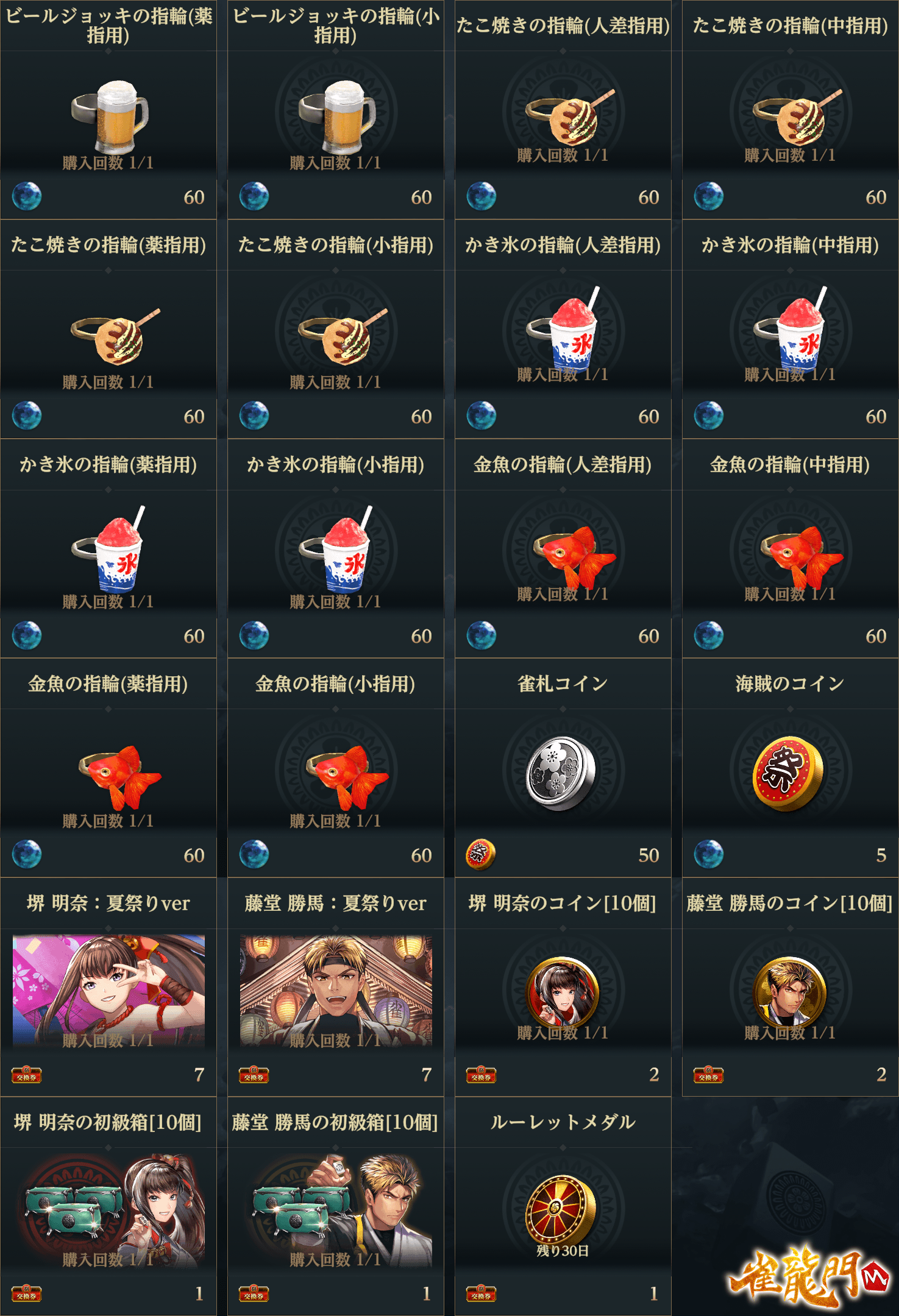 「夏祭りのコイン」はルーレットの他に夏祭りショップの商品から入手が可能です!