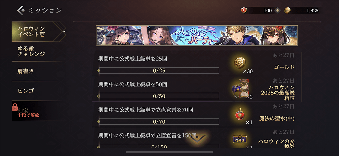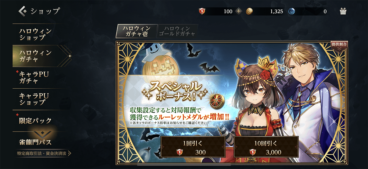 公式戦(上級卓)で獲得できる対局報酬のルーレットメダルが増加し、「ハロウィンのコイン」を獲得する効率が大幅にアップ!