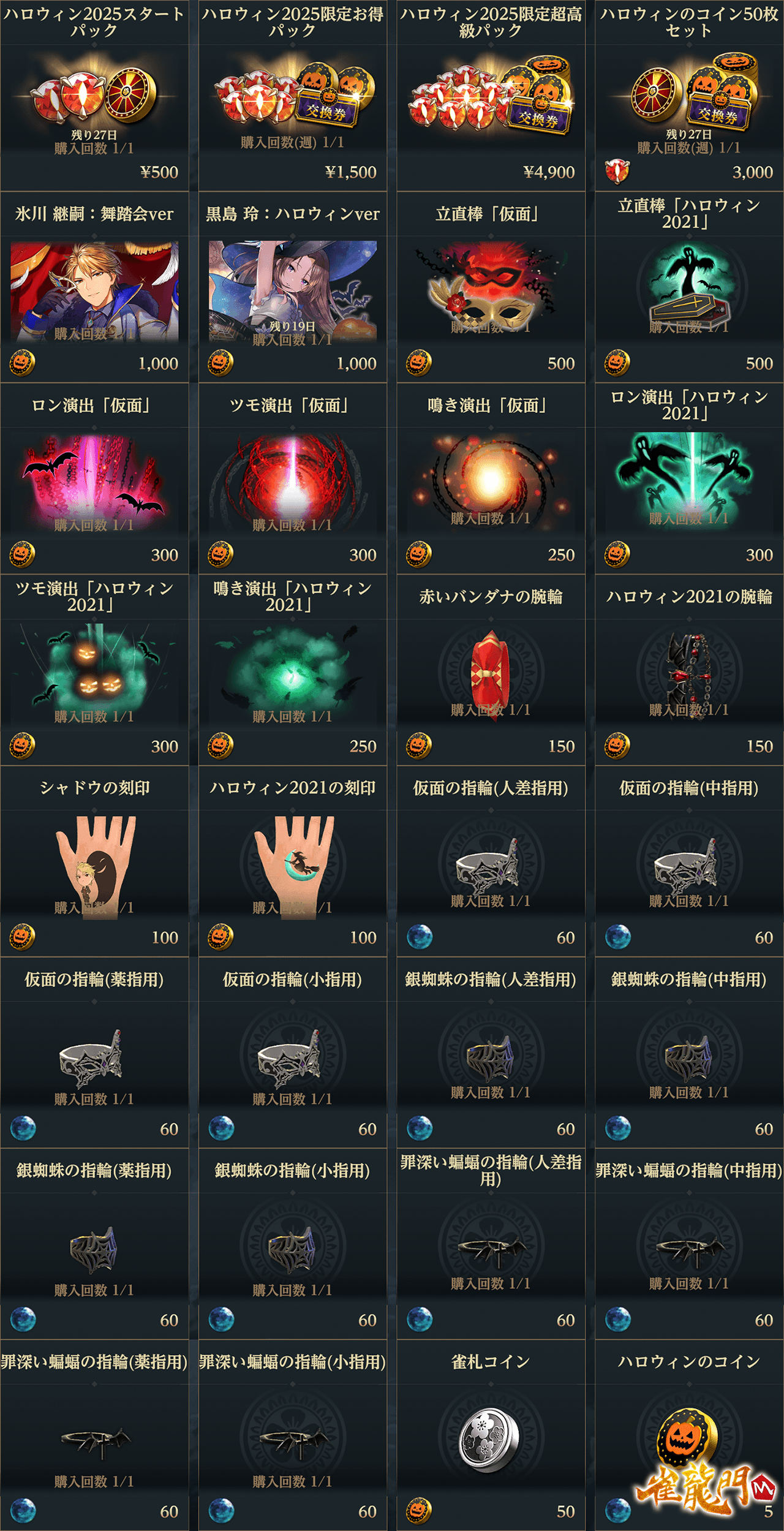 ※詳しくはショップ内の「ハロウィンショップ」にてご確認いただけます。