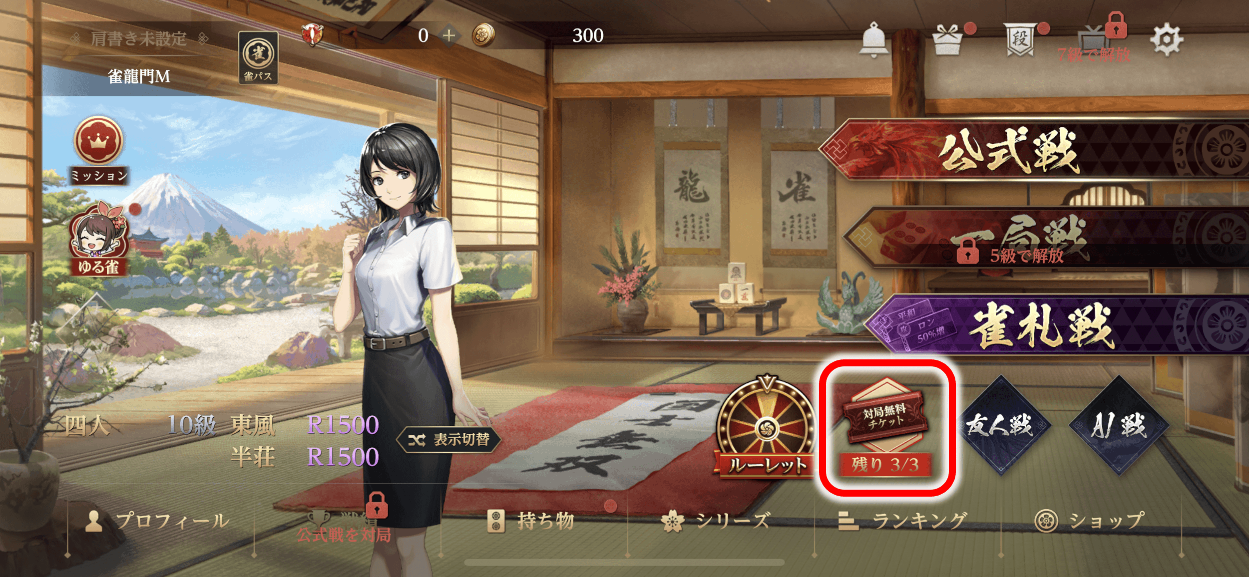 対局無料チケットを獲得して、公式戦上級卓に挑戦しましょう!