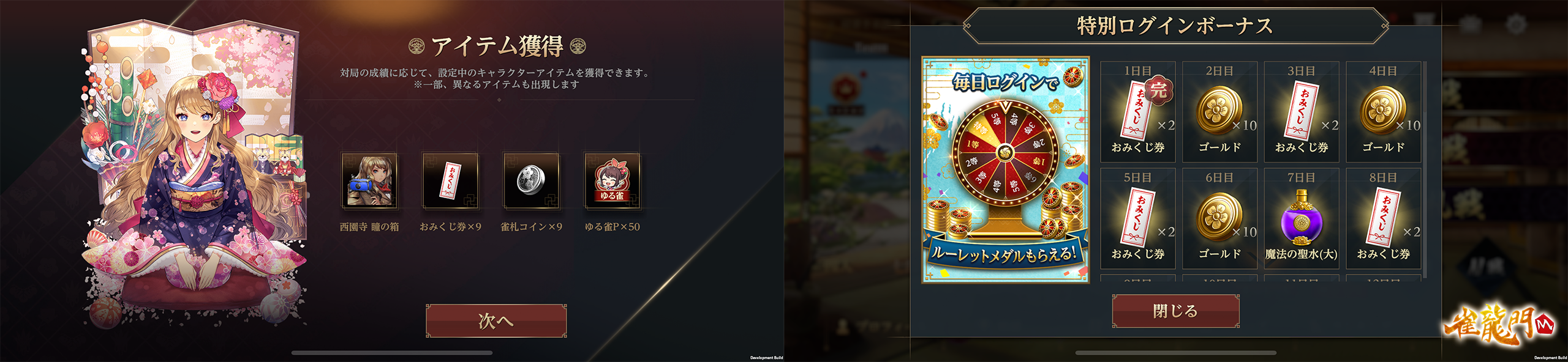 ルーレットを回すための「おみくじ券」は公式戦(上級卓)の対局報酬、ログインボーナスから入手が可能です!