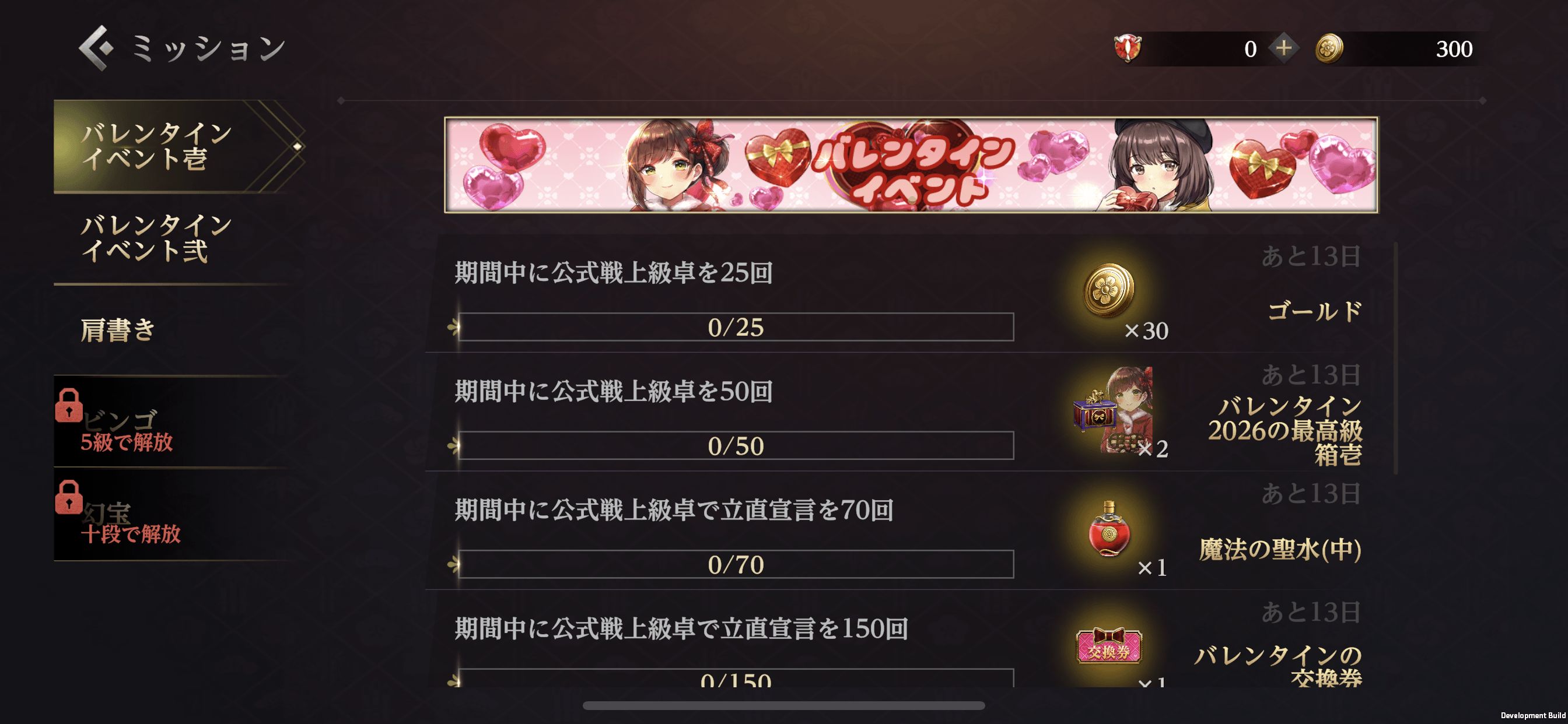 イベントミッションを達成すると「バレンタイン2026の最高級箱」などを獲得できます。